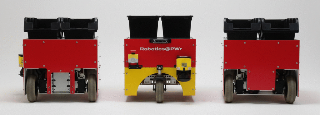 Prezentowany robot to autonomiczna platforma mobilna (AMR) zaprojektowana i zbudowana w ramach działań Robotics@PWr na Politechnice Wrocławskiej. Stanowi demonstrator technologii, służący do rozwoju i testowania rozwiązań z zakresu autonomicznej nawigacji oraz transportu wewnętrznego.